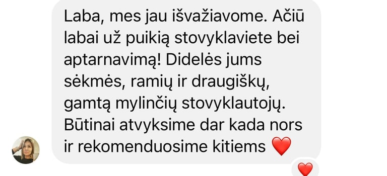 Mes džiaugiamės, kad pasirinkote mūsų stovyklavietę. Kad visiems būtų malonu ir saugu, prašome perskaityti mūsų taisykles.