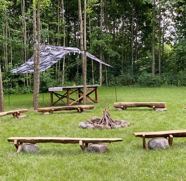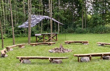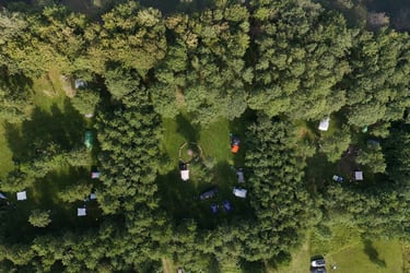 Mūsų stovyklavietėje galite mėgautis tiek privačiomis, tiek bendromis poilsio erdvėmis. Siūlome dvi privačias aikšteles su elektros tiekimu, suteikiančias daugiau privatumo ir patogumo. Taip pat turime bendrą aikštelę su penkiomis rezervuojamomis vietomis be elektros. Kiekvienoje apsistojimo vietoje įrengti suolai su stalu ir stogeliu, o šalia – šašlykinės, kurias rasite tiek privačioje, tiek bendroje aikštelėje. Bendrojoje aikštelėje įrengti du bio-tualetai, o privačiose zonose – po vieną. Išskirtinė stovyklavietės išdėstymo struktūra leidžia pasirinkti tiek saulėtą, tiek pavėsingą vietą.